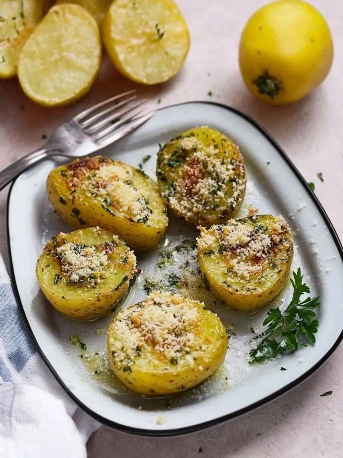 After removing the potatoes from the oven, let them rest for 5 minutes. This allows the steam to redistribute, keeping the interior moist while the crust stays crisp. It also gives the Parmesan a chance to set into a firm, golden layer.